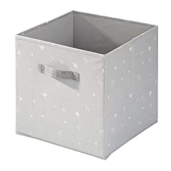 iDesign Star Fabric Storage Cube Bin, Medium Basket Container with Dual Side Handles for Closet, Bedroom, Toys, Nursery - Gray
