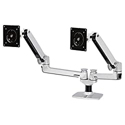 Amazon Basics Dual Arm Monitor Stand - Lift Engine Arm Mount, Aluminum - Silver