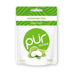 PUR 100% Xylitol Mints, Sugarless Mojito Lime Mint, Sugar Free + Aspartame Free + Gluten Free + Vegan - Freshens Breath, Low Carb, Simply Pure Natural Flavored Candy, 50 Pieces (Pack of 1)