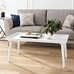 Nathan James Hazel Mid-Century Wood Tray Top Coffee Table with Narrow Cone Legs and Modern Veneer Finish, White